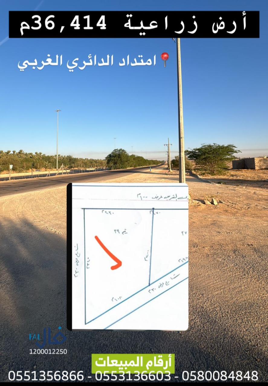 أرض زراعية تفتح على الدائري الغربي للبيع