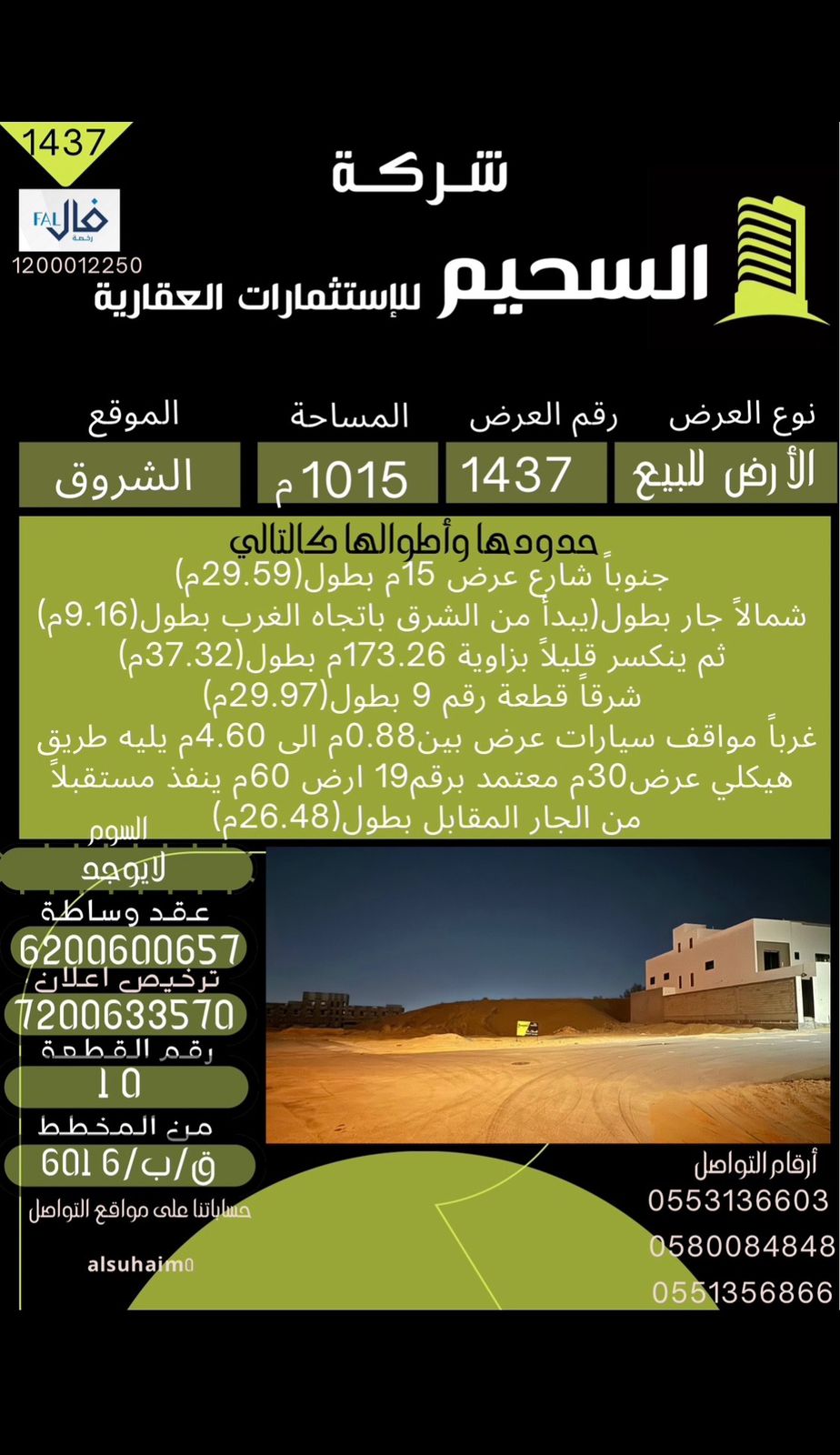 • المساحة : 1015.45م