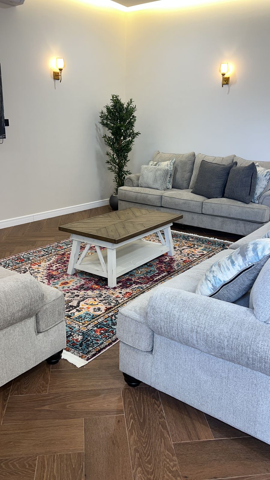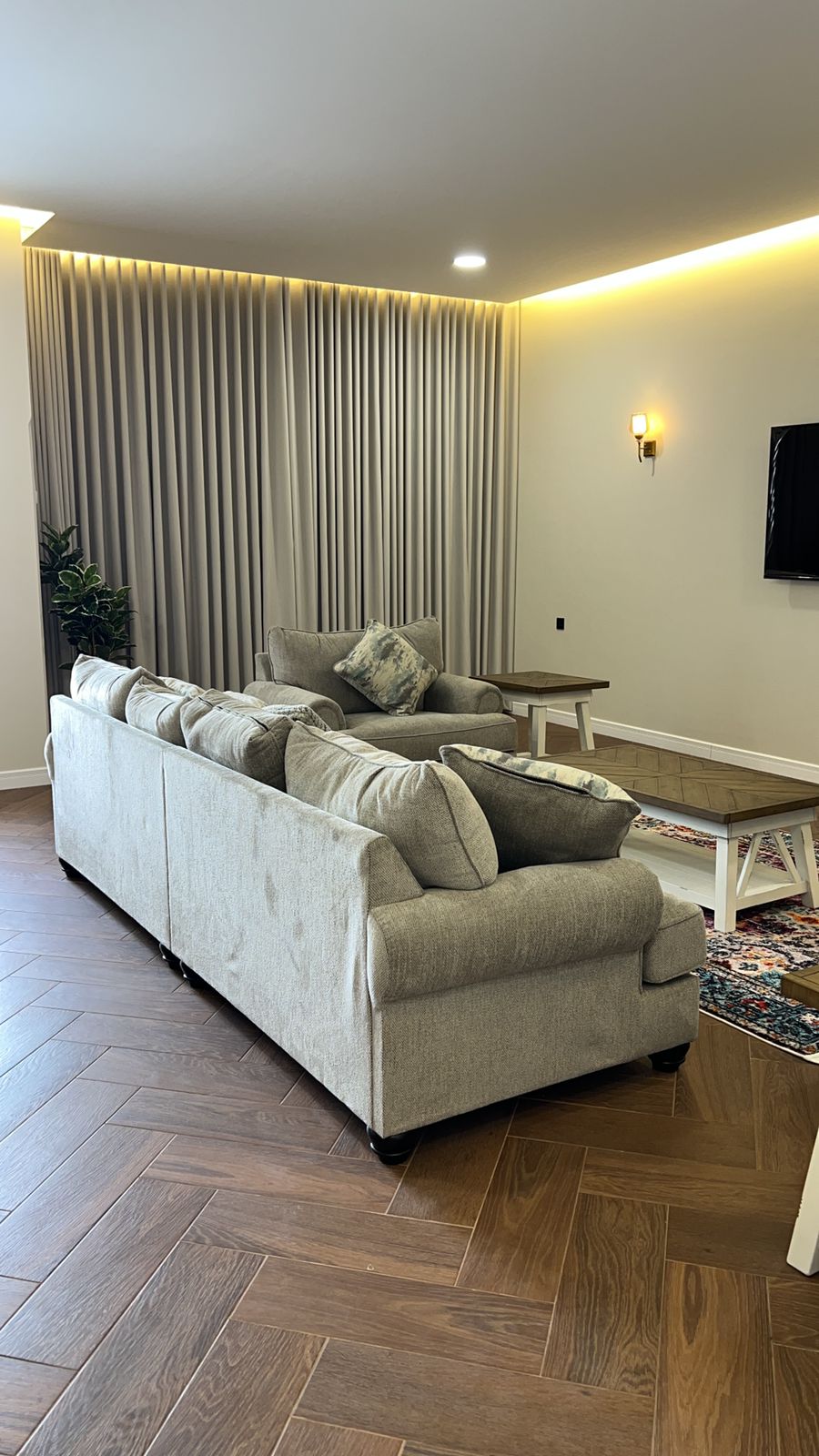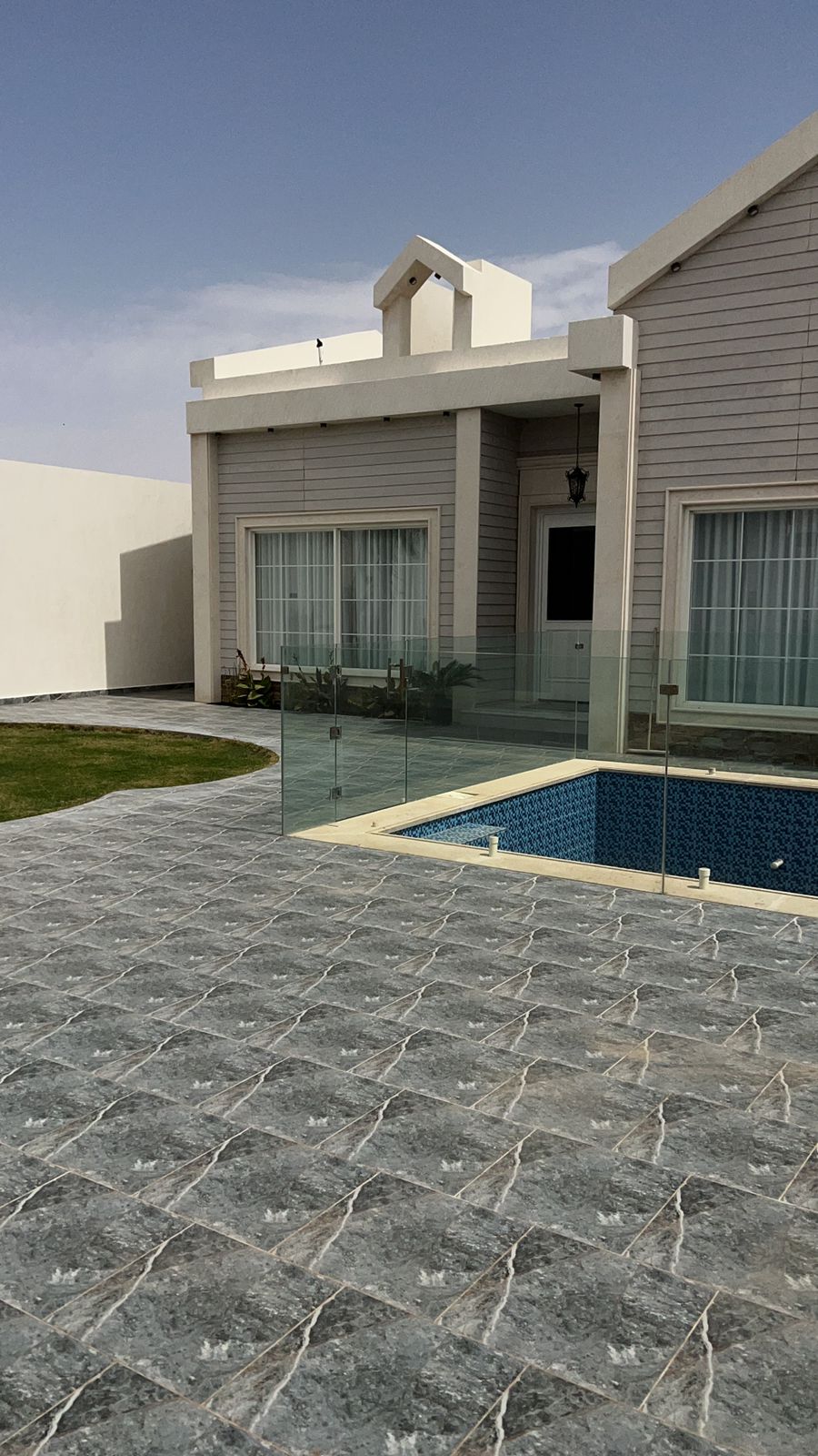 مدخل سيارة - مسطح أخضر - مسبح - صالة - غرفتين نوم - دورة مياة -  ومغسلة - مطبخ -