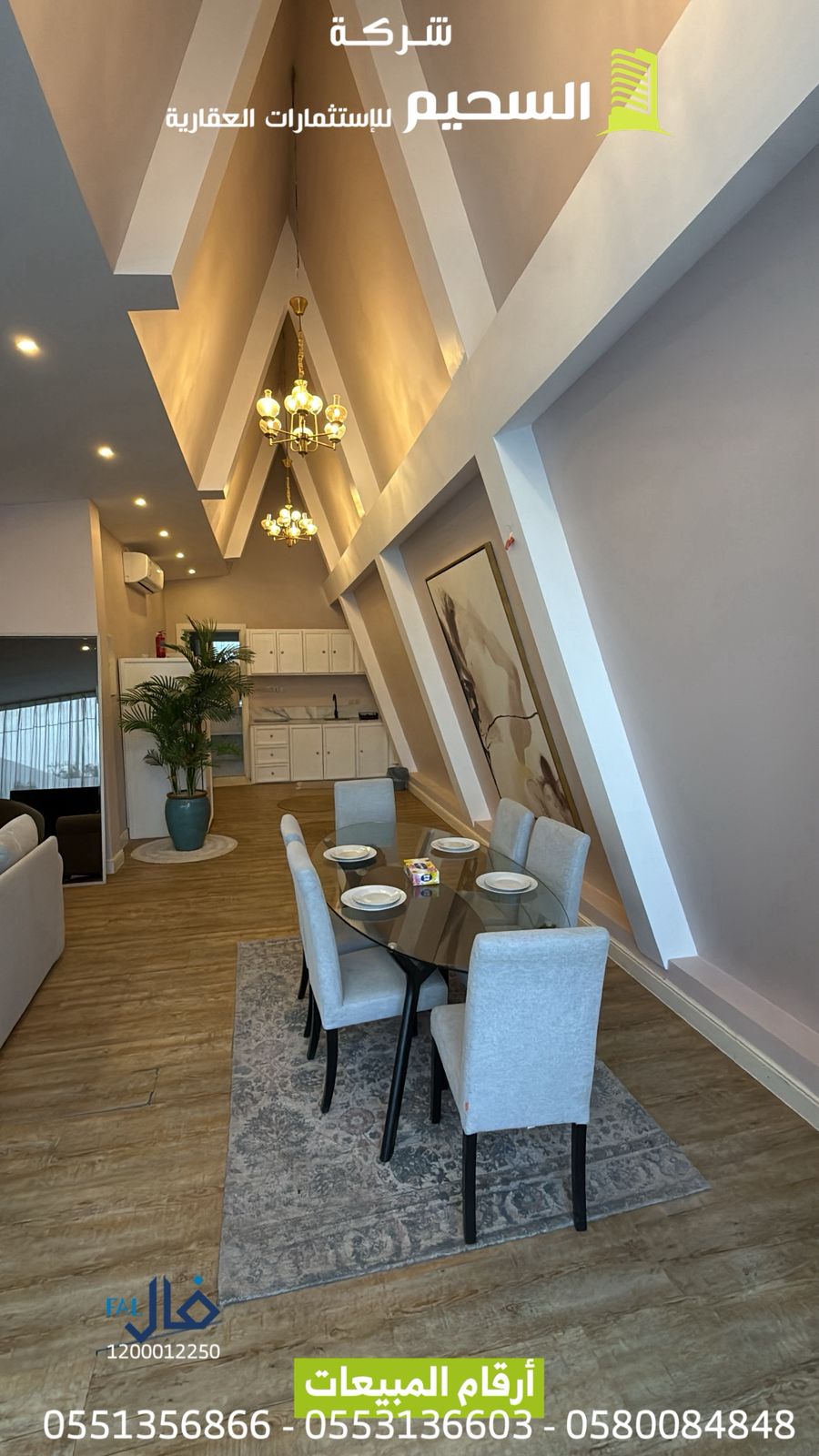 صالة واسعة - طاولة طعام - غرفة نوم - بوفيه - دورة مياة ومغاسل