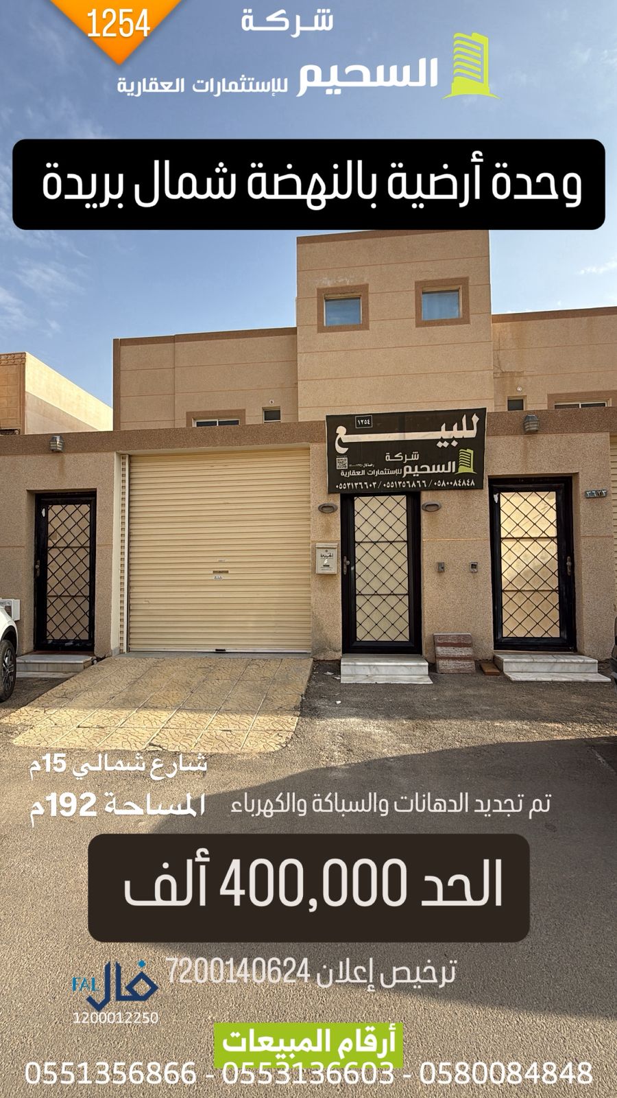للبيع وحدة علوية بالنهضة شمال بريدة