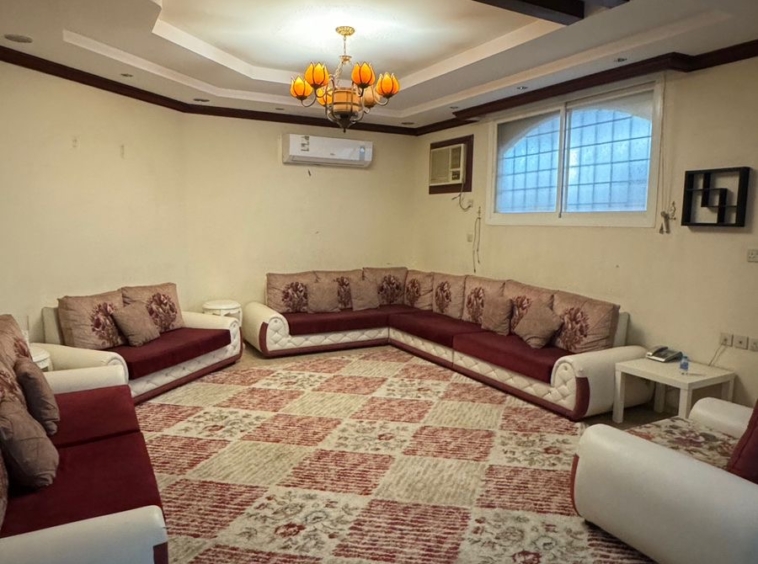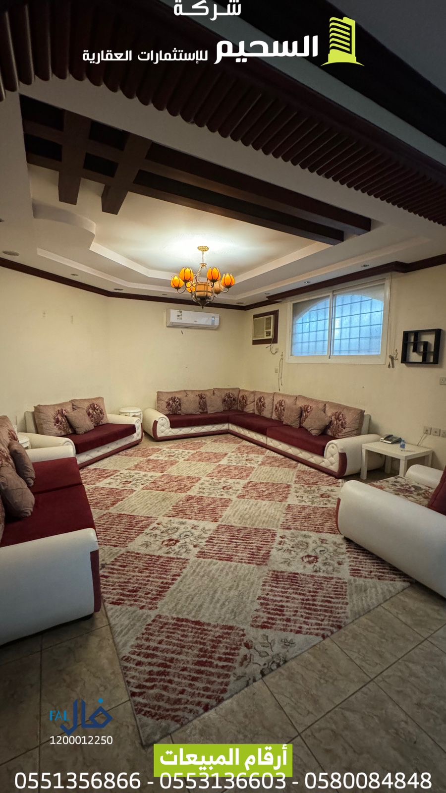 الدور الأرضي : مجلس + مقلط + صاله + غرفه نساء +مطبخ + مستودع +٢ دوره مياه