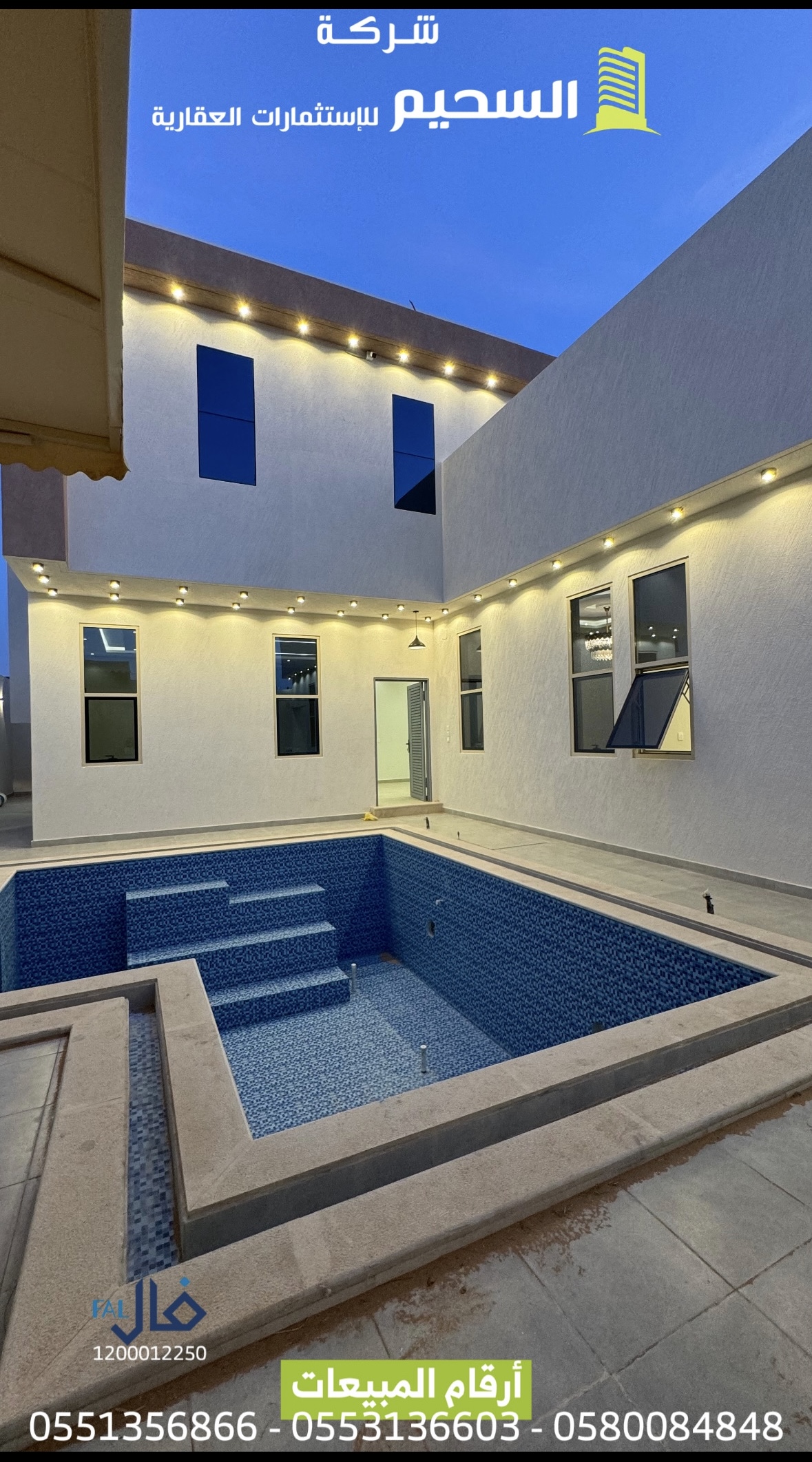 الدور الأرضي: مدخل سيارة - مسبح - ملحق+دورة مياة - غرفة نوم